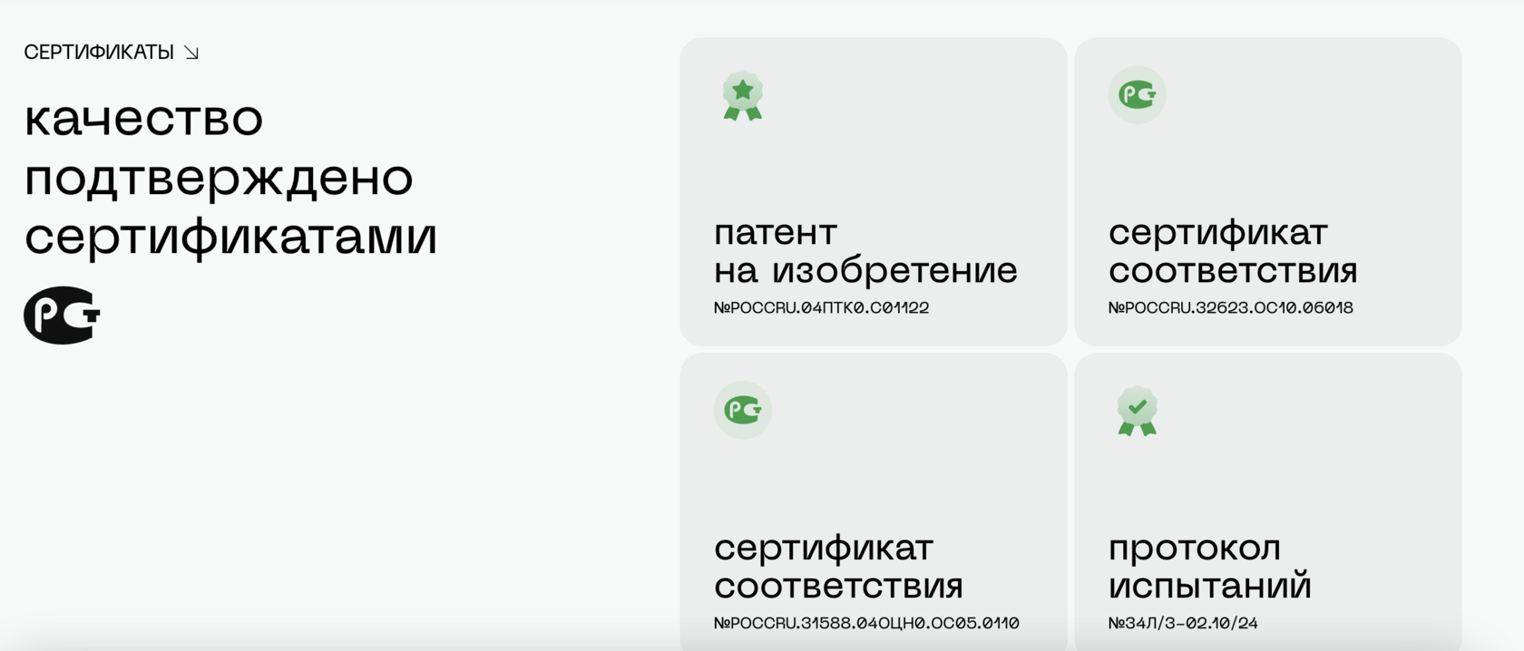 У нас есть все необходимые сертификаты на услуги и материалы, ЕАС и СЕ сертификаты подтверждают надежность и качество оборудования